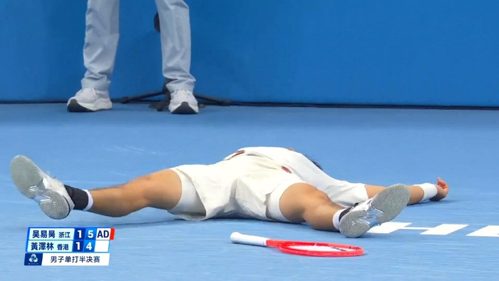 全运会男单半决赛,吴易昺鏖战近三小时实现逆转,最终以6-7(6) 7-6(7) 6-4的比分逆转击败香港选手黄泽林,打破此前对对手的两连败心魔,首次跻身全运会男单决赛。